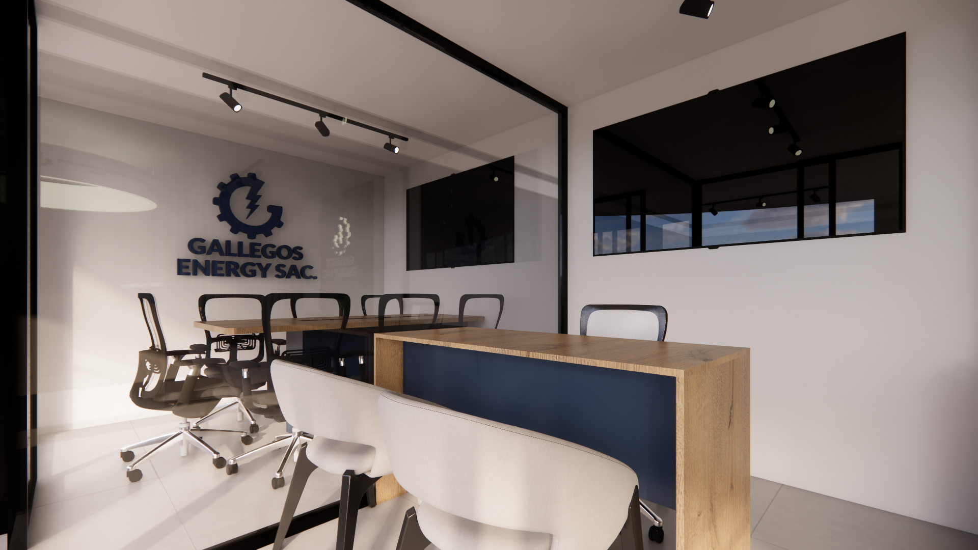 Para la oficina de Gallegos Energy, ubicada en una torre corporativa, desarrollamos un diseño cálido y funcional, alineado con su identidad profesional. Se utilizaron materiales y tonos acogedores que transmiten cercanía y orden, distribuyendo el espacio en diferentes zonas de trabajo, reunión y espera. El resultado es una oficina eficiente, moderna y agradable para el día a día laboral.