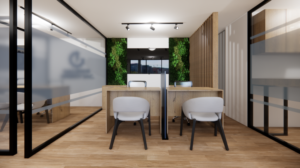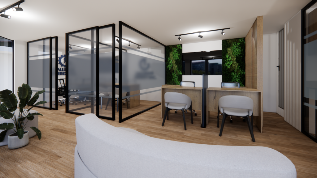 Para la oficina de Gallegos Energy, ubicada en una torre corporativa, desarrollamos un diseño cálido y funcional, alineado con su identidad profesional. Se utilizaron materiales y tonos acogedores que transmiten cercanía y orden, distribuyendo el espacio en diferentes zonas de trabajo, reunión y espera. El resultado es una oficina eficiente, moderna y agradable para el día a día laboral.